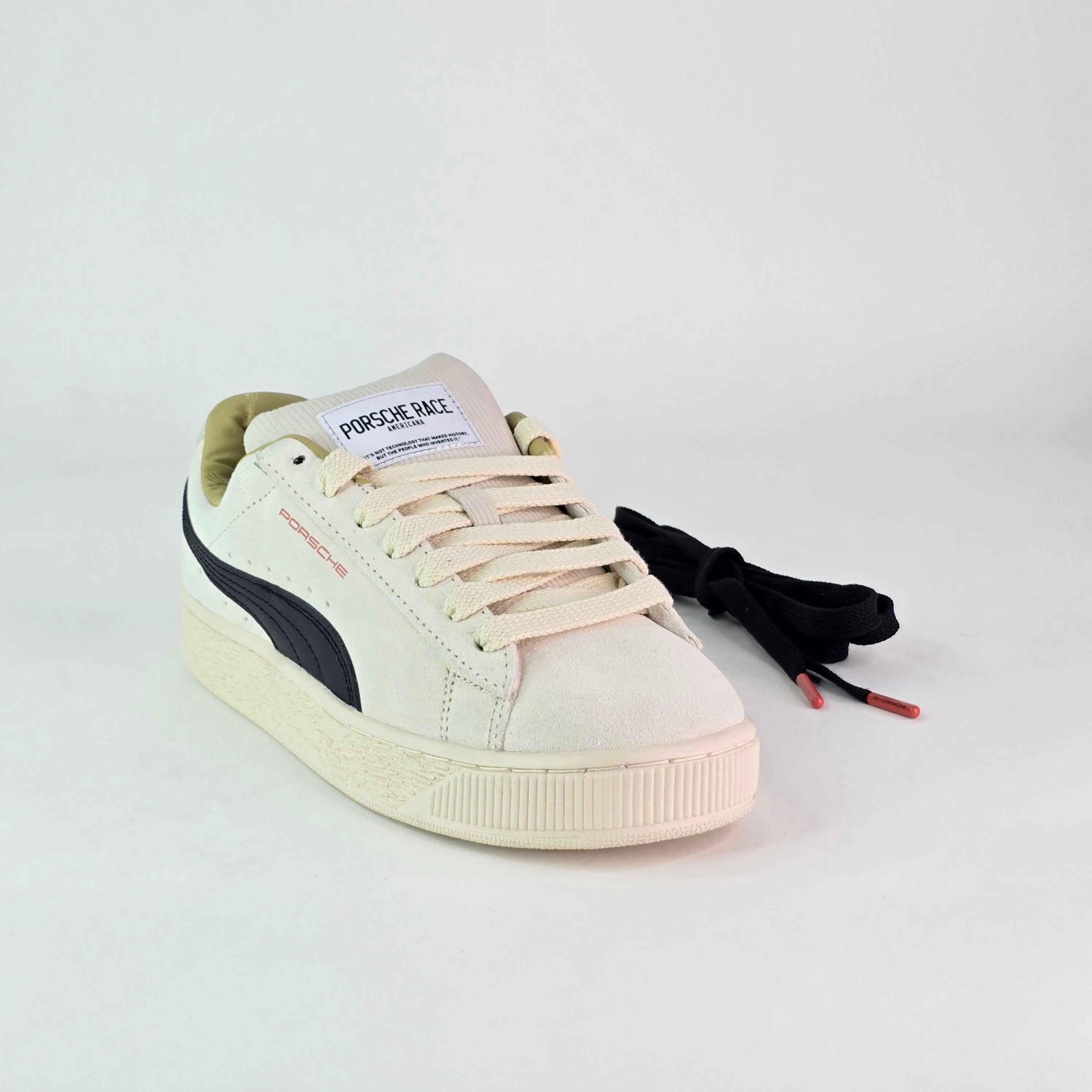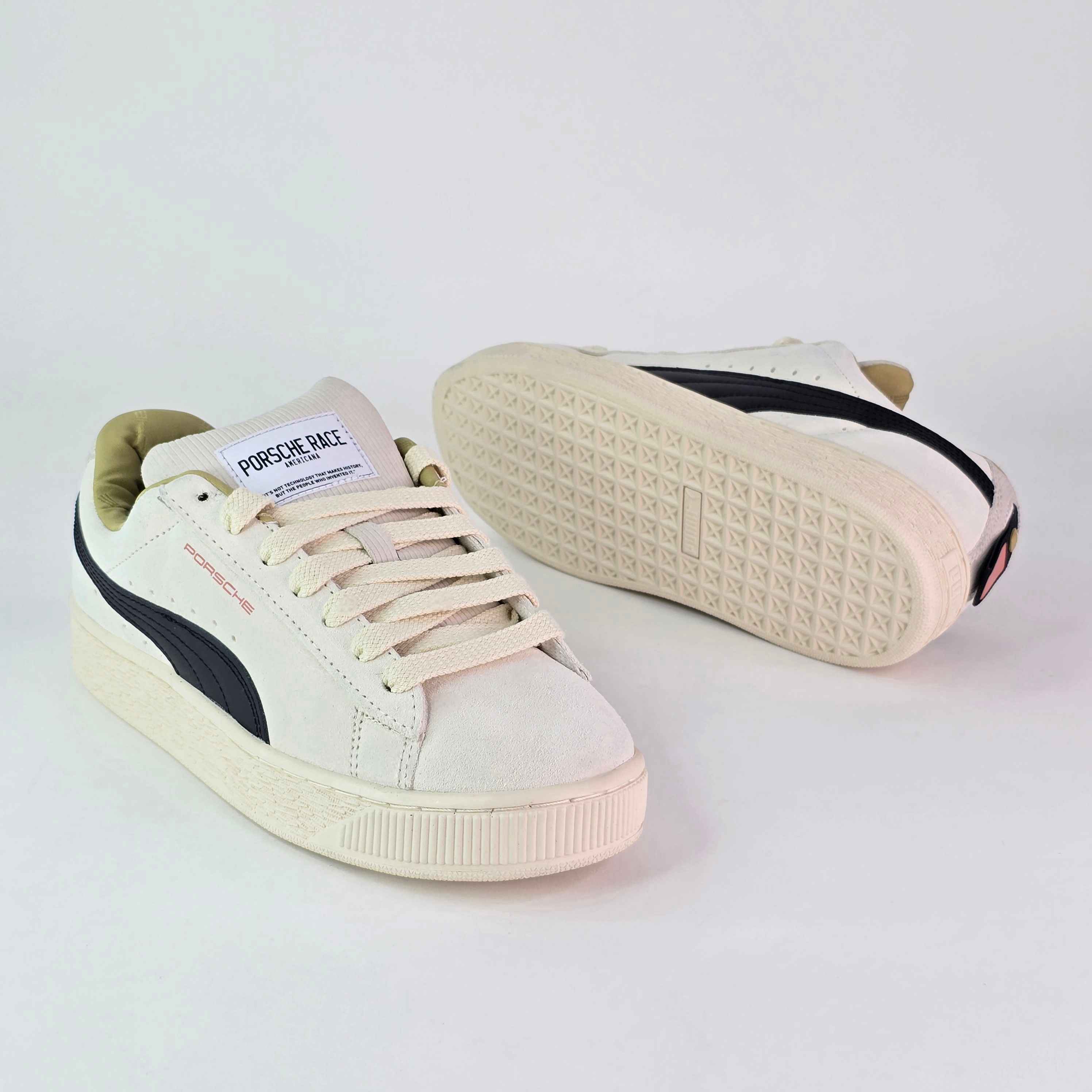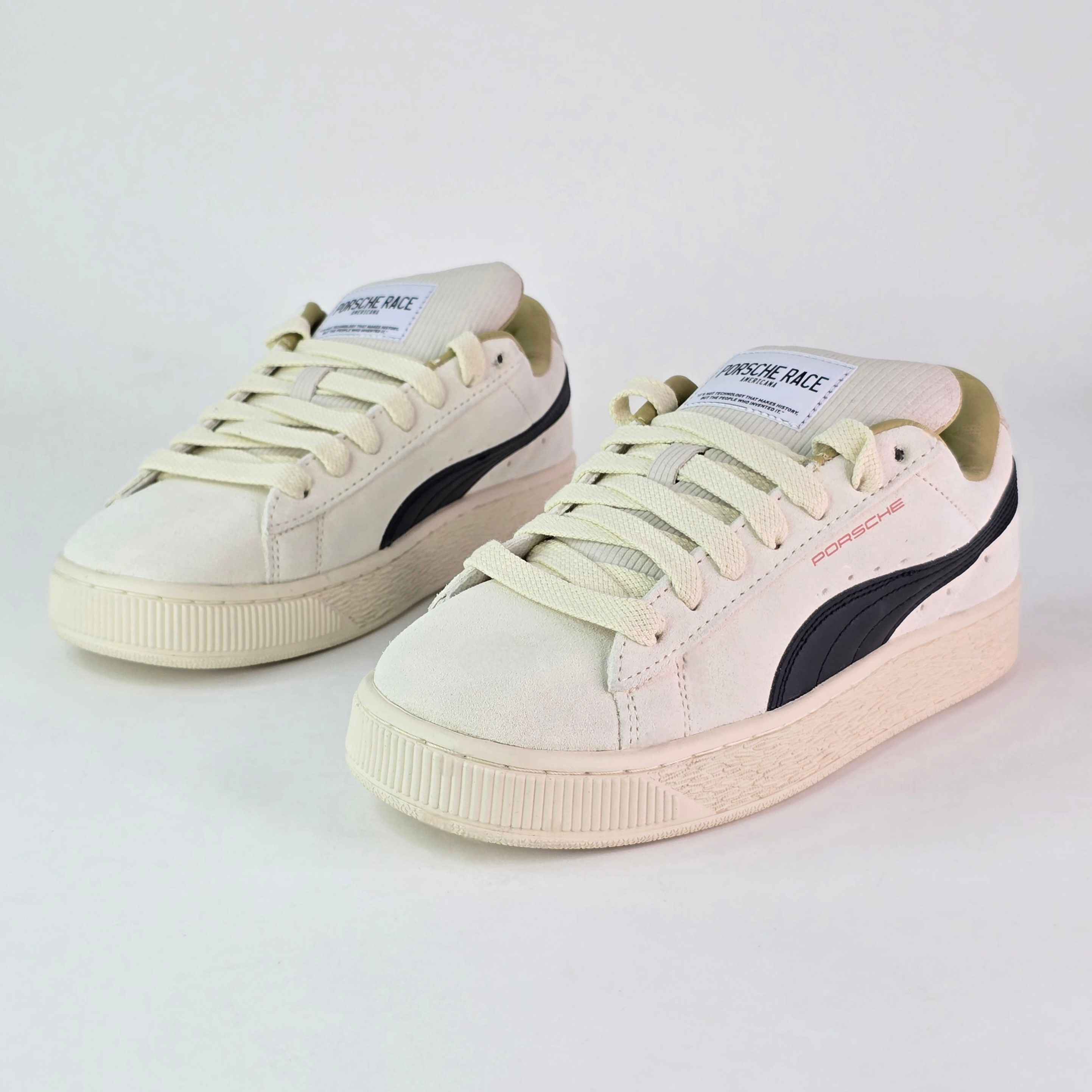 Las nuevas prendas y tenis Porsche Legacy le rinden homenaje a la icónica herencia de la escudería, combinando materiales premium con diseños atemporales. Esta versión motorsport de nuestros Suede XL combina su clásico look con el espíritu del alto octanaje. Presentan un diseño de líneas limpias, una suave cubierta y una suela voluminosa.